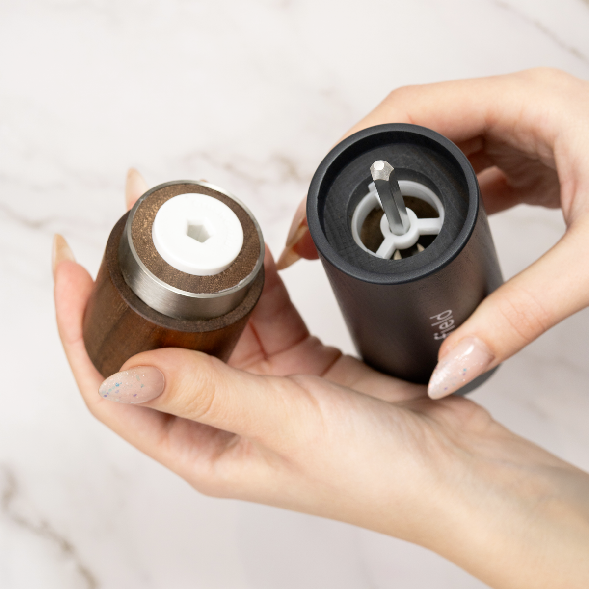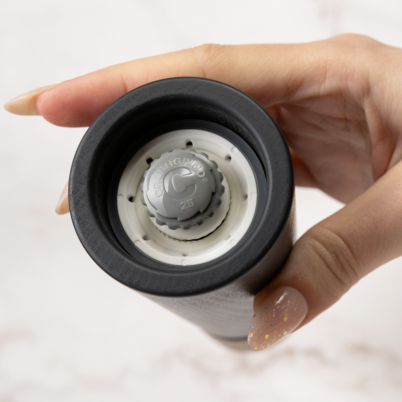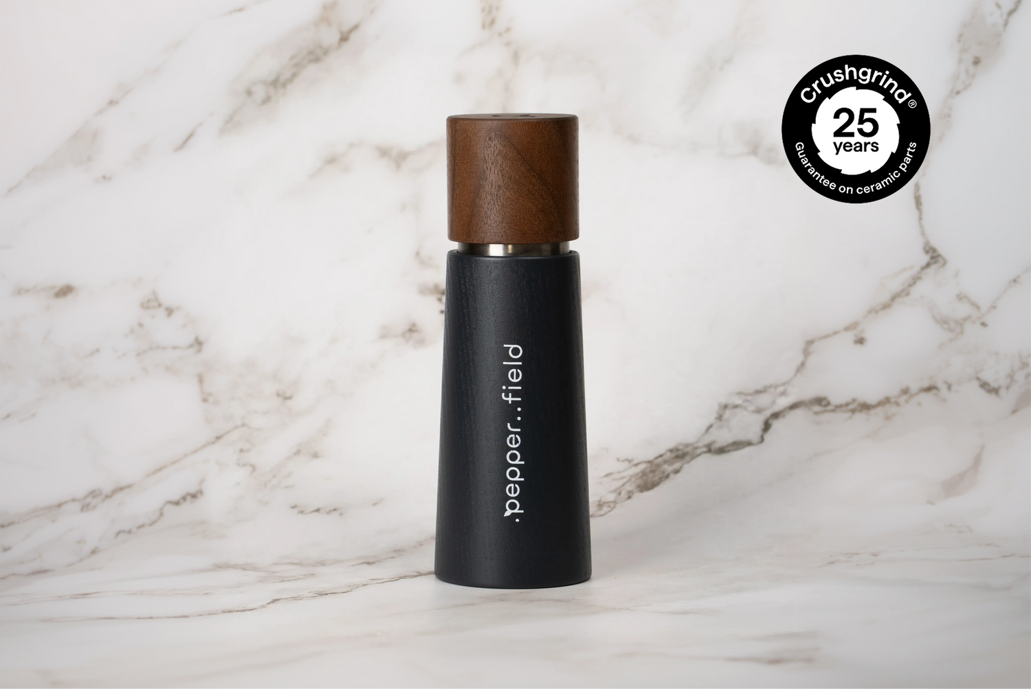 The flagship is your most favorite elegant white Grinder with a walnut head and its inseparable partner dark gray anthracite Grinder – a beautiful combination for example for Kampot pepper and salt. All mills always come with the proven patented CrushGrind mechanism, which has a 25-year warranty. Each Grinder is suitable for dry Kampot pepper as well as coarse Kampot salt.