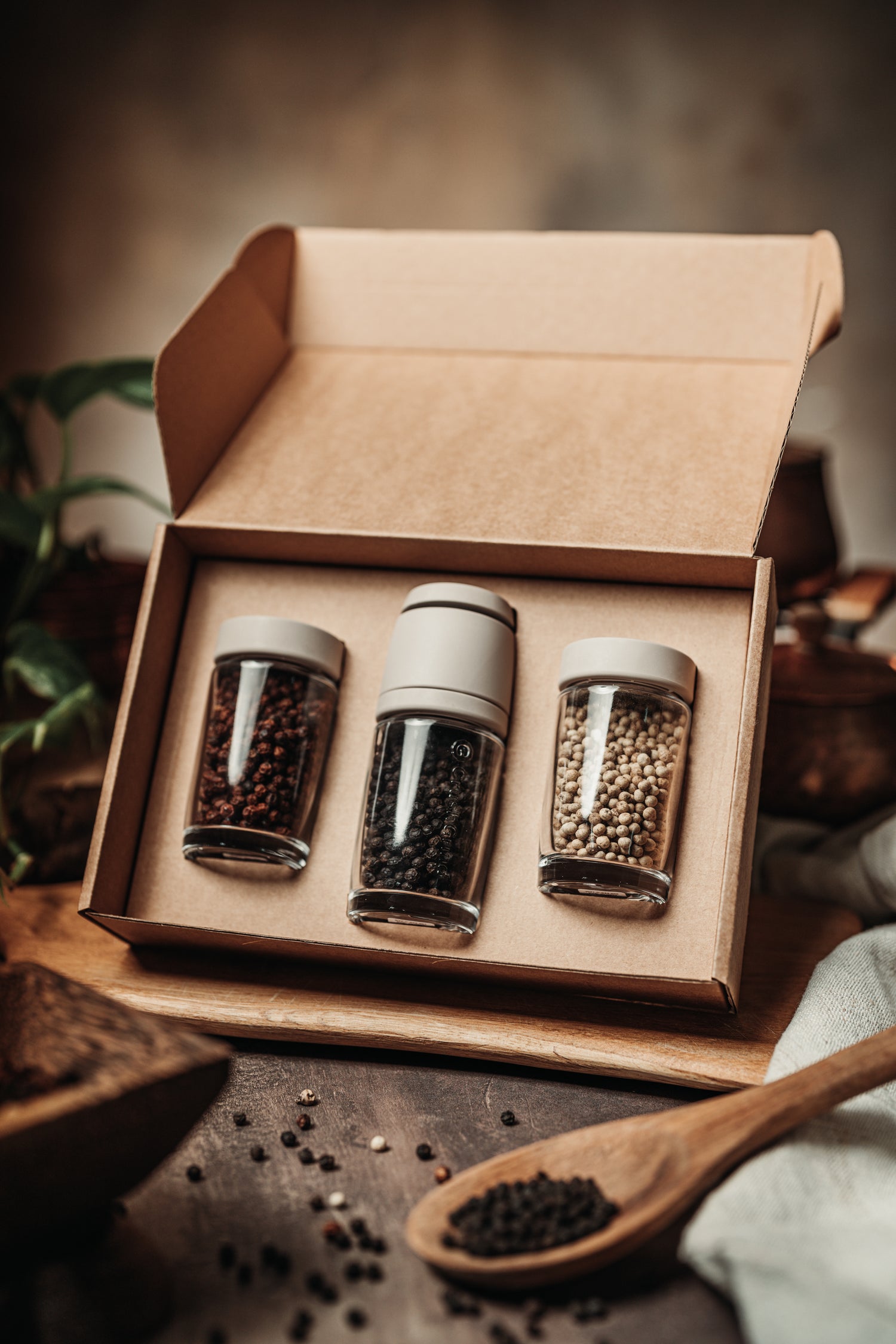 · 3x 50 g kampotského černého, bieleho aj Ďrveného korenia